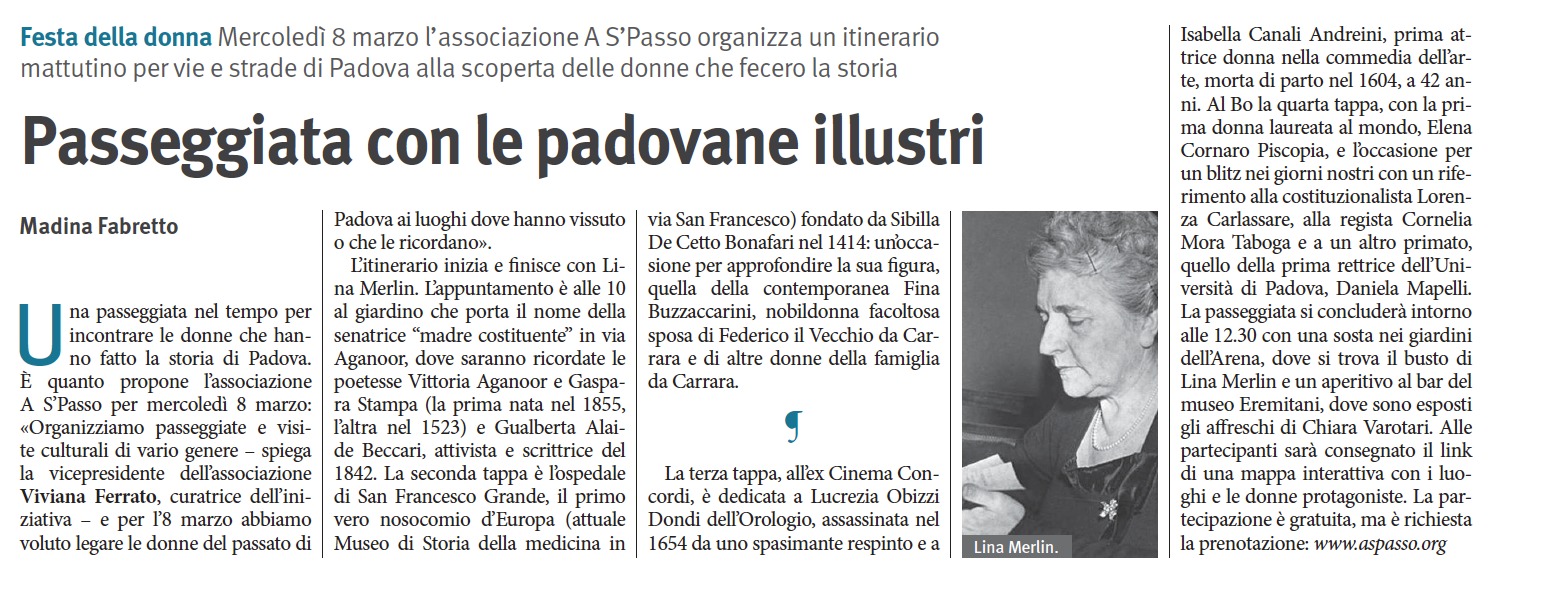 Home NotizieA S’passo l’8 marzo – Passeggiata con le padovane illustri